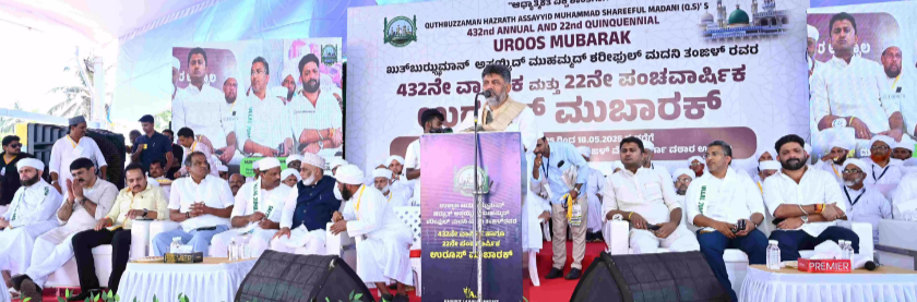 ಅವರು ಖುತ್ ಬುಝಮಾನ್ ಹಝತ್ ಅಸಯ್ಯದ್ ಮುಹಮ್ಮದ್ ಶರೀಫುಲ್ ಮದನಿ ತಂಬಳ್ ಅವರ ಹೆಸರಿನಲ್ಲಿ ನಡೆಯುವ ಉರೂಸ್ ಕಾರ್ಯಕ್ರಮ ಪ್ರಯುಕ್ತ ಮೇ.10, ಶನಿವಾರ ಭೇಟಿ ನೀಡಿ ದರ್ಗಾ  ಝಿಯಾರತ್ ನಡೆಸಿದ ಬಳಿಕ ನಡೆದ ಸಭಾ ಕಾರ್ಯಕ್ರಮ ಉದ್ಘಾಟಿಸಿ ಮಾತನಾಡಿದರು.